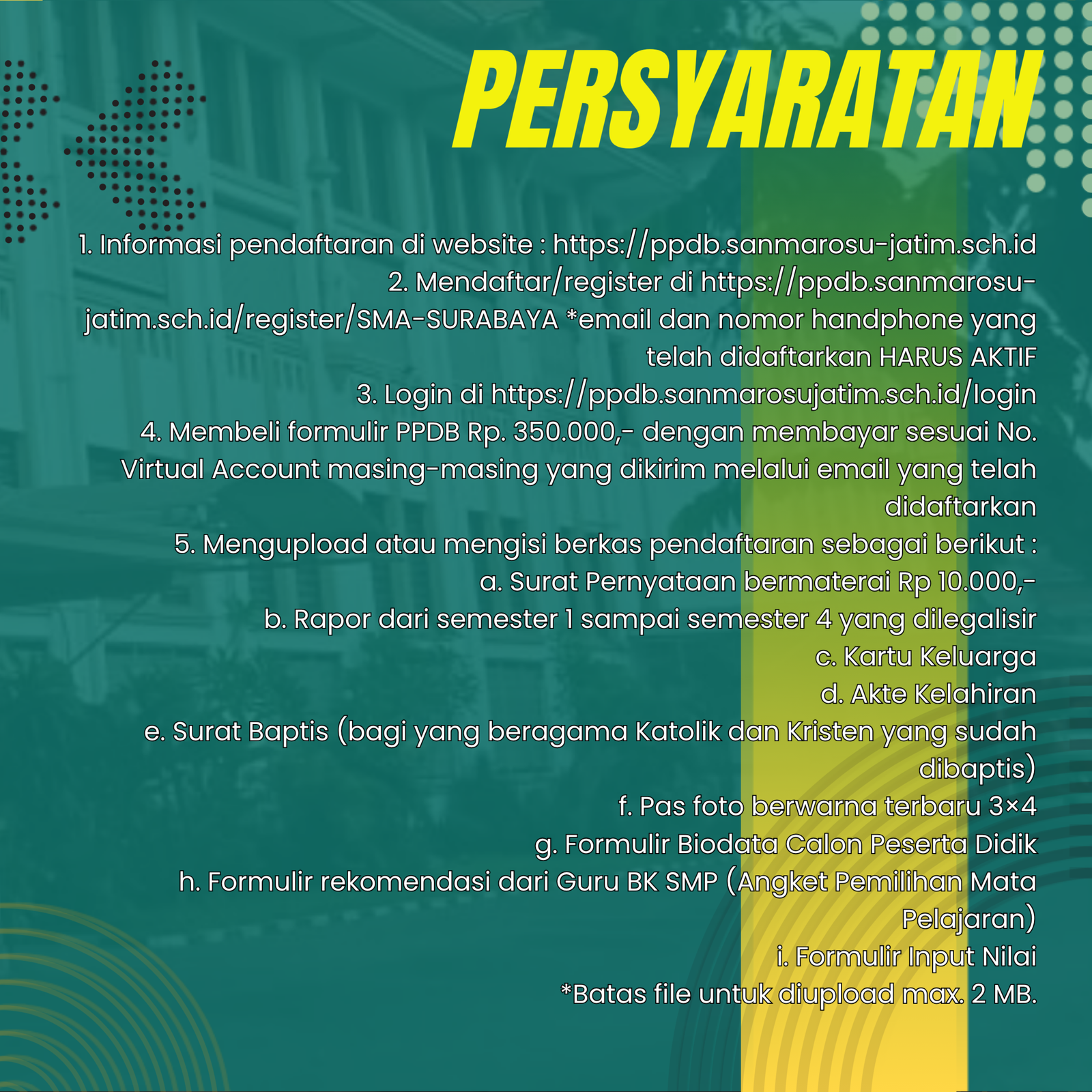 Banyak orang tua di Surabaya mendesak para Suster Ursulin di Kepanjen untuk mendirikan sekolah menengah, yang pada Zaman itu disebut H.B.S. (Hogere Burger School). Namun, tidak mudah untuk memenuhiya karena harus memiliki gedung yang memenuhi syarat dan harus disiapkan tenaga pengajar. Apalagi sekolah ini merupakan sekolah perintis, pemerintah Belanda belum mempunyai sekolah tingkat menengah di Jawa. Akhirnya komunitas Kepanjen memutuskan membangun gedung H.B.S. di jalan Kupang yang sekarang kita sebut jalan Raya Darmo.